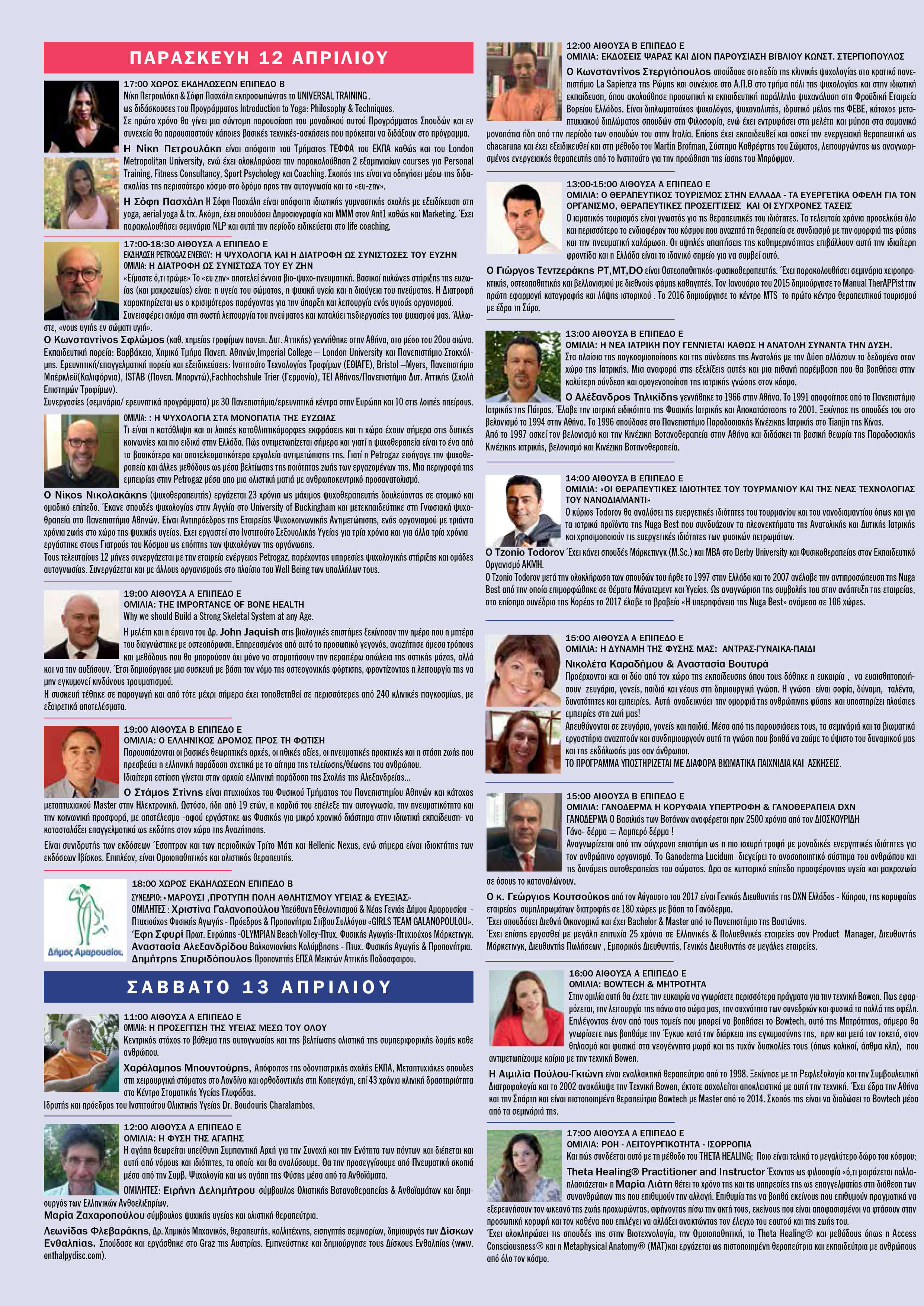 Forum, σεμινάρια, μοναδικές διαλέξεις, θεατρικά δρώμενα, συναυλίες με καταξιωμένους καλλιτέχνες, διαδραστικά events, βιωματικές ασκήσεις, εκδηλώσεις για όλη την οικογένεια και δεκάδες άλλες δραστηριότητες, θα μετατρέψουν αυτό το τριήμερο σε μια πραγματική γιορτή γεμάτη χαρά αλλά και γνώσεις σε πολύ σημαντικούς τομείς της ζωής μας.