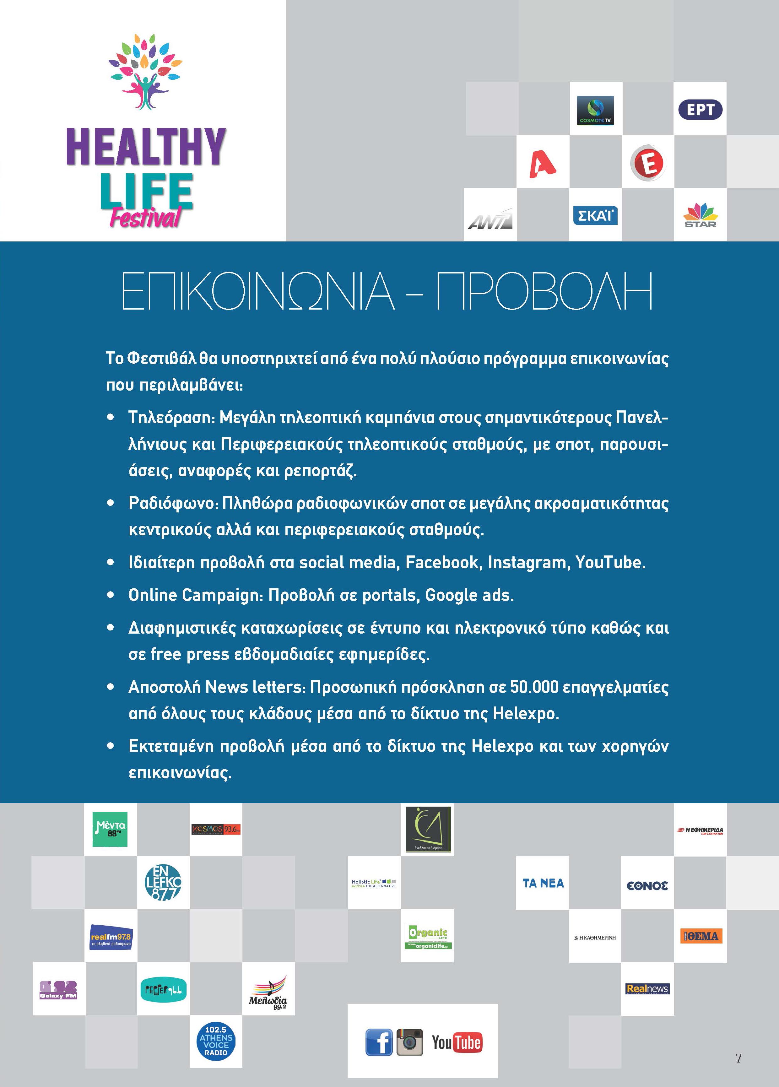 Το HEALTHY LIFE FESTIVAL είναι το μεγαλύτερο φεστιβάλ ΕΥΖΗΝ που διοργανώνεται στη χώρα μας. Η πολύ μεγάλη επιτυχία της προηγούμενης διοργάνωσης καθιέρωσε το Healthy Life Festival σαν τον κύριο χώρο έκφρασης όλων των τάσεων, εφαρμογών, μεθόδων, προϊόντων και υπηρεσιών που αφορούν την Υγεία και την Ευζωϊα.