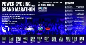 Ο μεγαλύτερος μαραθώνιος Εσωτερικής ποδηλασίας στα Βαλκάνια είναι προ των πυλών. Οι κορυφαίοι Έλληνες Power Cycling Concept Presenters και 220 τυχεροί ασκούμενοι σε ένα δίωρο τρελής έντασης και ενέργειας!